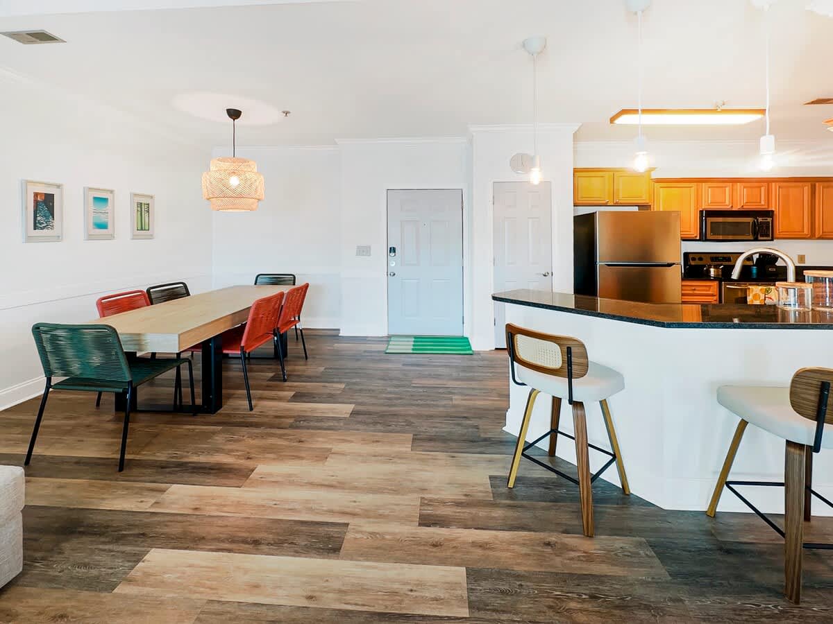 Welcome to your perfect coastal stay! This charming 2-bedroom, 2-bathroom fully furnished rental offers everything you need for a relaxing 30+ day stay including a pool and just 2 miles from Folly Beach. We offer 2 bikes for guests to use as well. The beautiful terrace over looks that the pool and outdoor entertaining area.
