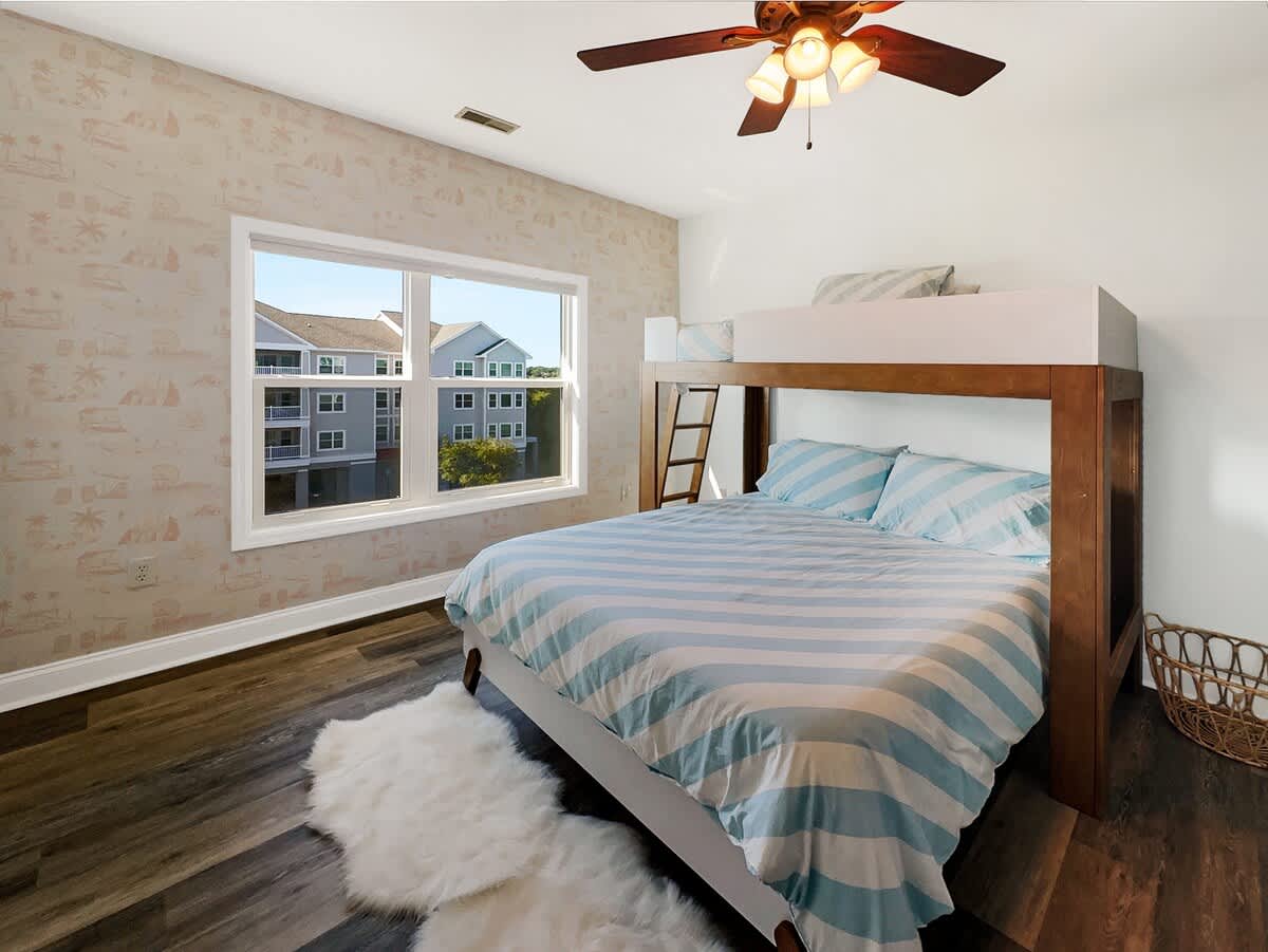 Step inside to discover a beautifully appointed space designed with your comfort in mind. The master bedroom features a cozy queen bed and an attached bathroom with a luxurious spa tub and walk in closet. The second bedroom is perfect for families or friends, boasting a queen bed and a twin bunk bed, along with a spacious walk-in closet. Enjoy the fresh sea breeze from your private balcony or take a dip in the shared pool to cool off. For added convenience, a grocery store is right across the street, making it easy to stock up on essentials. 2 Bikes available for bike rides to Folly Beach!