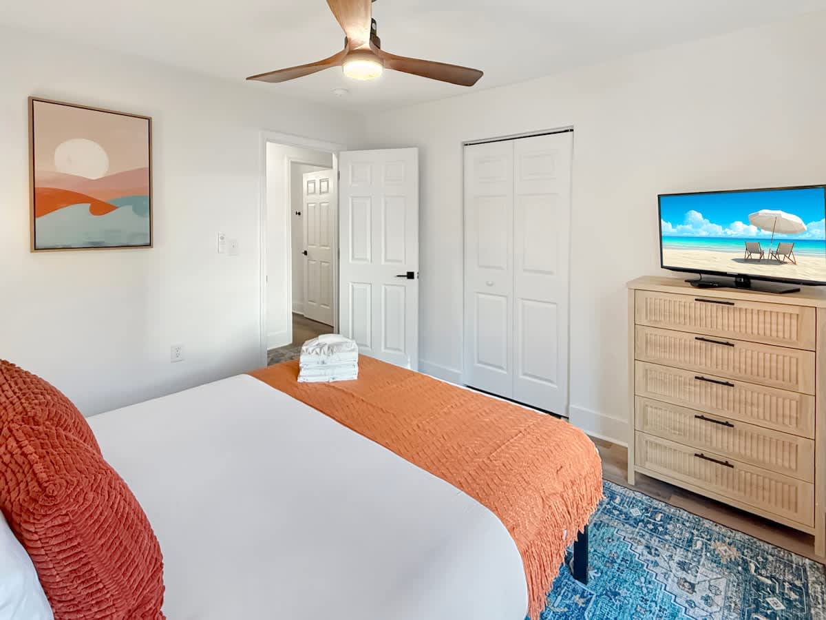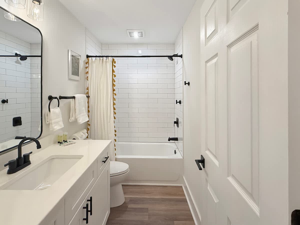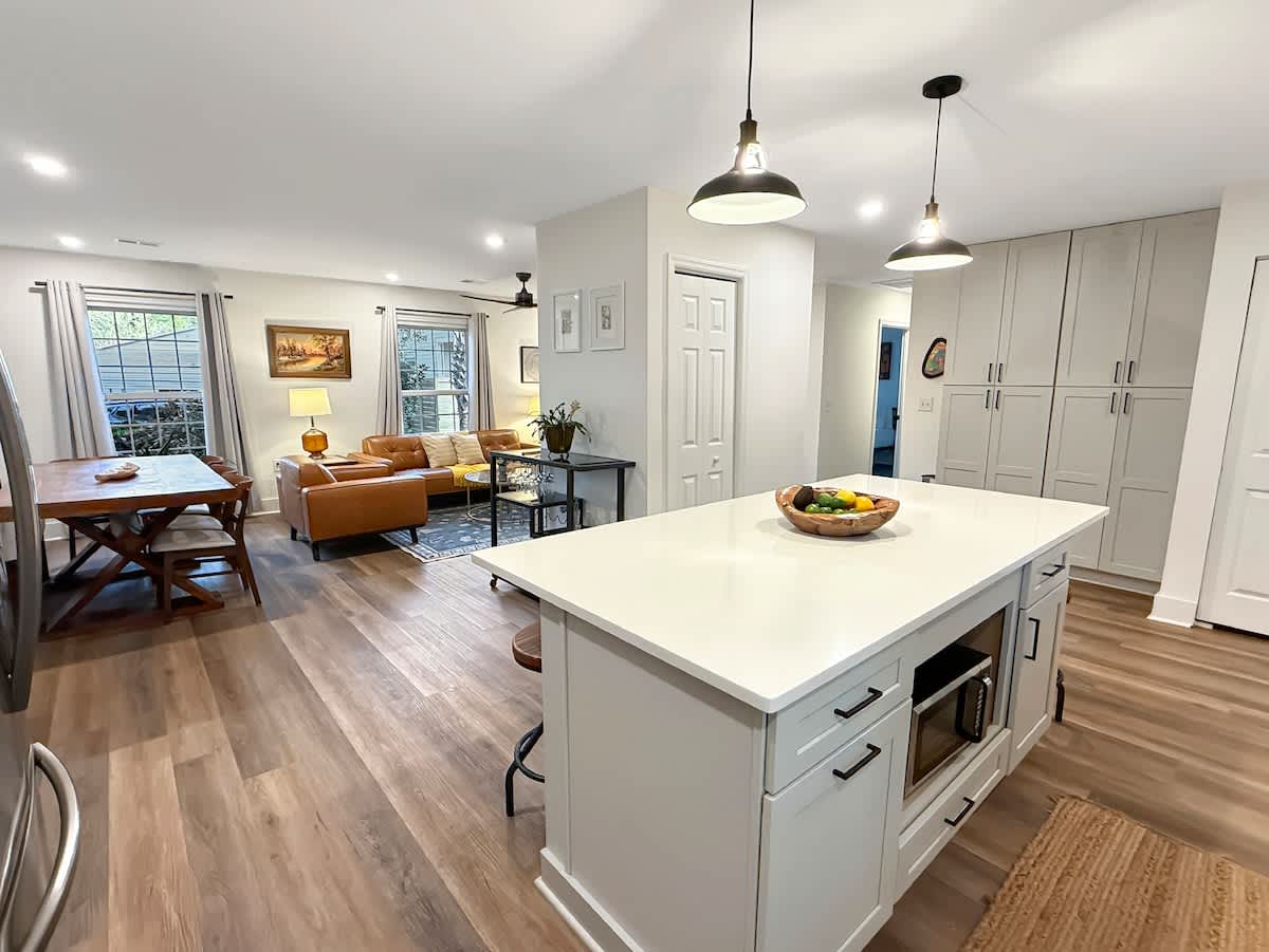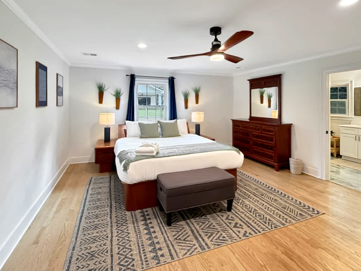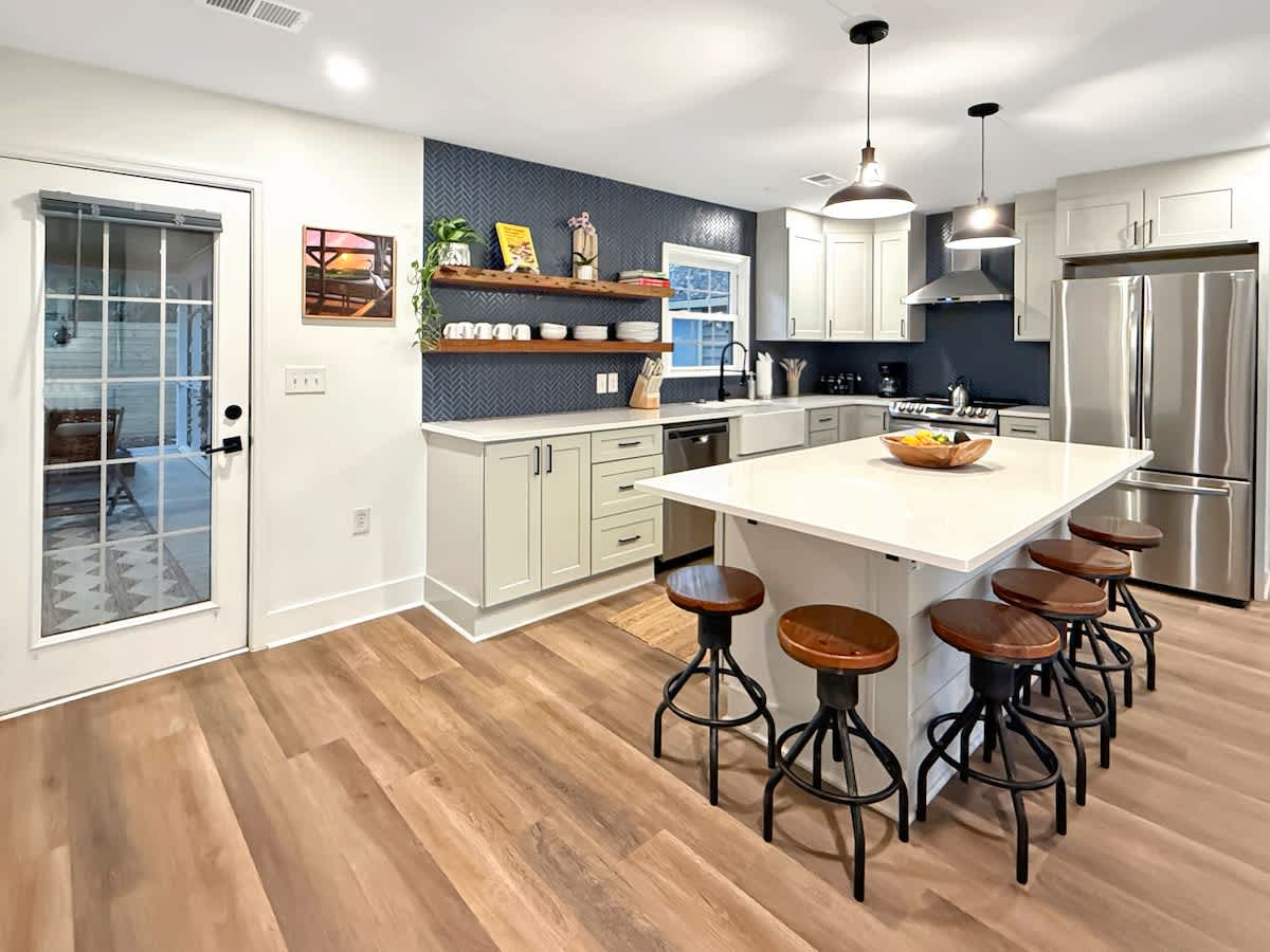 The open concept layout is designed to bring everyone together, whether you're lounging on the leather sofa or prepping dinner in the kitchen. The spacious living-dining area is anchored by a beautiful solid-wood table that seats your entire group comfortably—perfect for shared meals, game nights, or spreading out laptops for remote work. The fully remodeled kitchen features quartz countertops, stainless steel appliances, open shelving, and a generous island with seating. Whether you're preparing breakfast or hosting a group dinner, you'll find everything you need to cook and entertain with ease. The home comfortably sleeps eight guests. The primary bedroom features a king bed, an attached private bath with a large walk-in shower, and double doors that open directly onto the screened-in porch and hot tub area. Might we tempt you to end the day with a relaxing soak?!The remaining three rooms each offer comfortable queen beds, soft white linens, lots of natural light (and blackout curtains!) and plenty of closet space. All three bathrooms have been beautifully updated with clean, modern finishes and high-quality tile showers. No Charleston home is complete without a screened-in porch! With the bubbling hot tub, wall-mounted smart TV, mini-fridge, lounge seating, and overhead fan, it’s the perfect spot to unwind year-round, watch the game, and sip a cocktail out of reach from the mosquitos. The fully fenced backyard is shaded by mature oaks and makes for a peaceful, private outdoor space ideal for kids and pets (with approval) We expect guests to treat our home and neighbors as if they were your own. If you’ve ever wondered what it would be like to live in the Lowcountry, this is your chance to experience it! Please help us keep this place special.