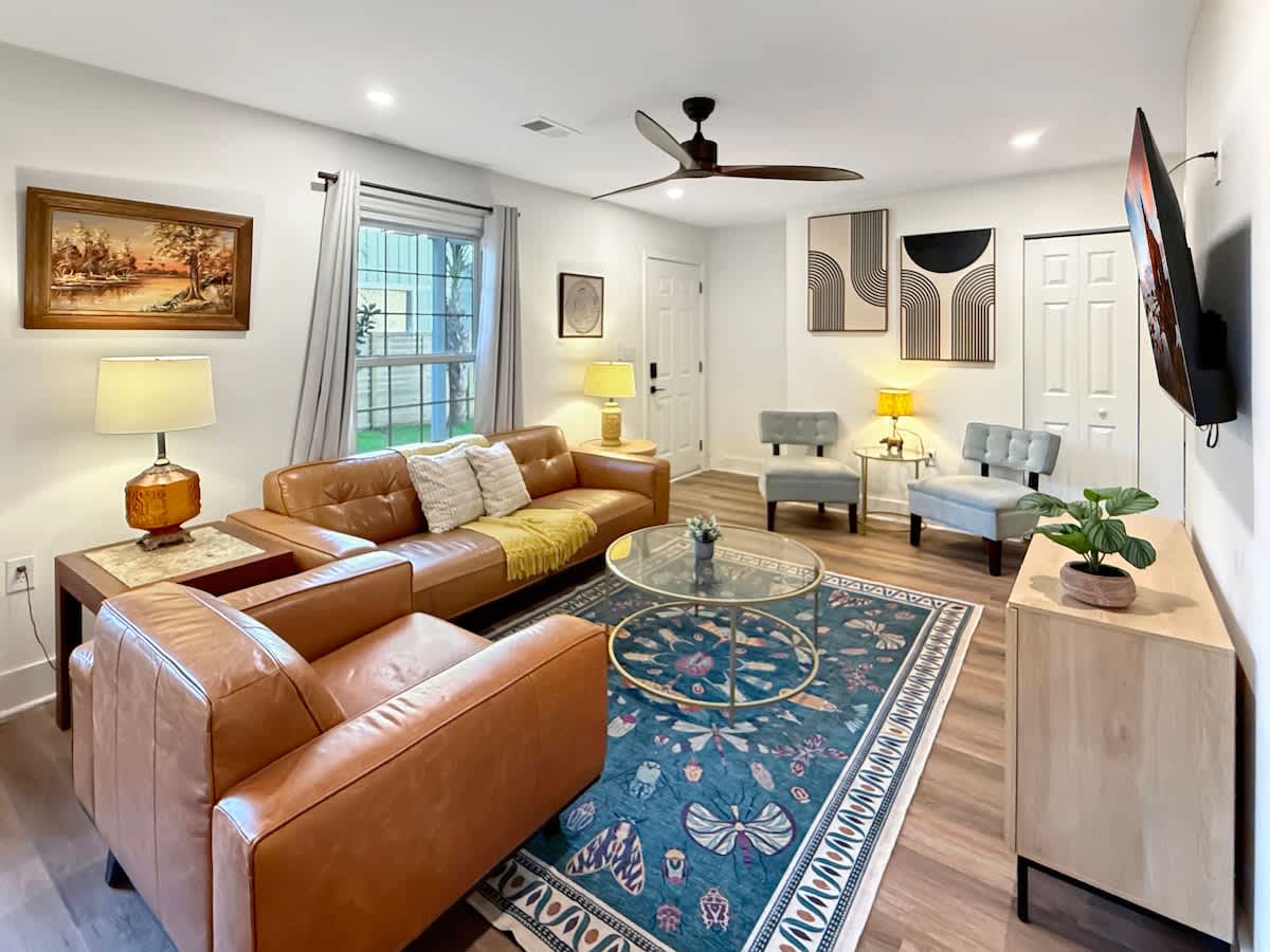 -Guest must follow all house rules outlined on the platform, in rental agreement and digital guidebook -Any refunds for cancelations will be less the credit card processing fees. - Quiet Hours are after 11pm. Failure to follow quite hours may lead to immediate cancellation of booking without refund. - This is a self-check-in property; you certify that you are willing and able to follow the instructions that are provided through Airbnb and/or the digital guidebook link prior to your check-in date. Failure to follow check-in instructions resulting in the inability to access the unit is not grounds for cancellation. - There is an $800 fee per day for smoking inside the unit. - There will be a $50 fee for any unauthorized late check out. - Damages/losses as a result of guest failing to follow the house rules as provided, requiring the subsequent guest(s) to be discounted or refunded will be the responsibility of the negligent party -If hanging any type of decorations, only use wall safe tape - Please confirm the number of guests in the reservation. Any additional guest will incur an additional fee. - Guest understands that exterior surveillance and noise monitoring devices may be used on the property. - Any unapproved pets on the property is a violation of house rules and will incur a penalty of up to $500 and will be charged to the card on file.